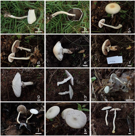 - Jaichaliaw, C.; Kumla, J.; Vadthanarat, S.; Suwannarach, N.; Lumyong, S. Multigene Phylogeny and Morphology Reveal Three Novel Species and a Novel Record of Agaricus from Northern Thailand. Front. Microbiol. 2021, 12, 650513. [Google Scholar] [CrossRef]