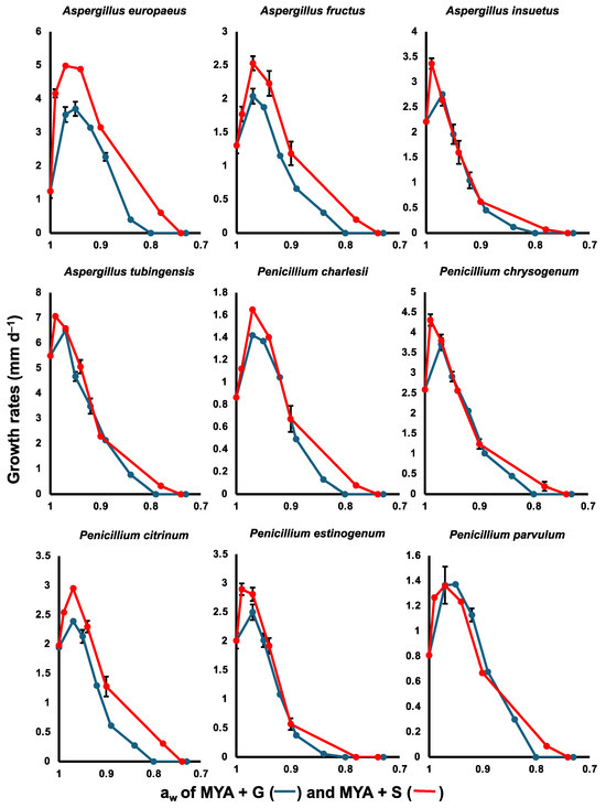 - Wheeler, K.A.; Hocking, A.; Pitt, J.I. Effects of temperature and water activity on germination and growth of Wallemia sebi. Trans. Br. Mycol. Soc. 1988, 90, 365–368. [Google Scholar] [CrossRef]