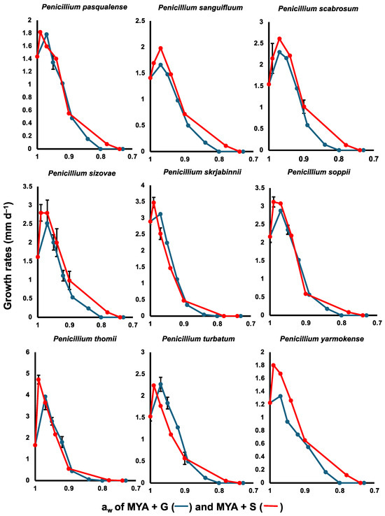 - Pitt, J.I. An appraisal of identification methods for Penicillium species: Novel taxonomic criteria based on temperature and water relations. Mycologia 1973, 65, 1135–1157. [Google Scholar] [CrossRef]
