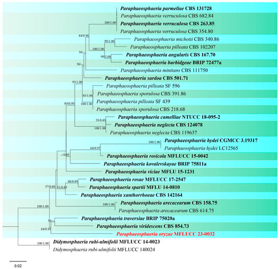 - Wanasinghe, D.N.; Maharachchikumbura, S.S.N. Exploring the diversity and systematics of Phaeosphaeriaceae: Taxonomic novelties from ecologically diverse habitats and their phylogenetic resolution. J. Fungi 2023, 9, 853. [Google Scholar] [CrossRef] [PubMed]