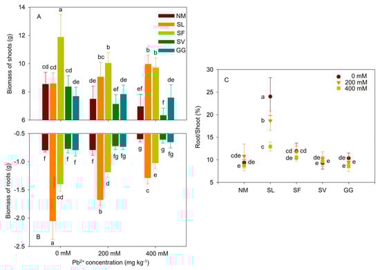 | Biomass of roots | 231.45 | 0.00 ** | 57.27 | 0.00 ** | 7.45 | 0.00 ** |