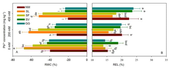 2.6. Relative Water Content (RWC) and Relative Electrolyte Leakage (REL)