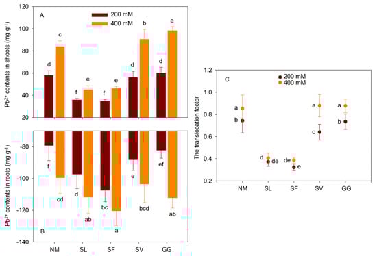 | Pb content in roots | 13.71 | 0.00 ** | 2002.68 | 0.00 ** | 4.84 | 0.00 ** |