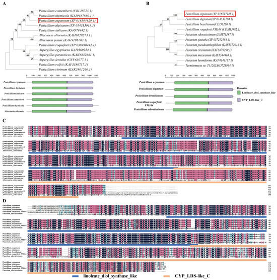 - Oliw, E.H. Fatty acid dioxygenase-cytochrome P450 fusion enzymes of filamentous fungal pathogens. Fungal Genet. Biol. 2021, 157, 103623. [Google Scholar] [CrossRef]
