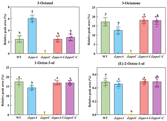 - Miyamoto, K.; Murakami, T.; Kakumyan, P.; Keller, N.P.; Matsui, K. Formation of 1-octen-3-ol from Aspergillus flavus conidia is accelerated after disruption of cells independently of Ppo oxygenases, and is not a main cause of inhibition of germination. PeerJ 2014, 2, e395. [Google Scholar] [CrossRef]