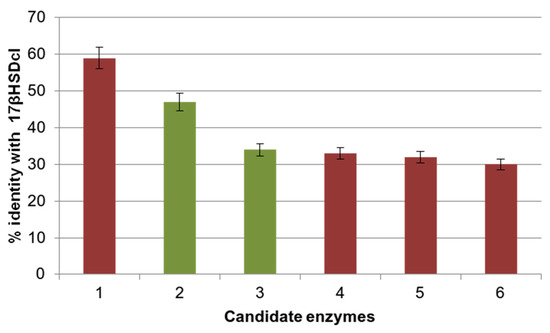 Mold fungi of Aspergillus, Acremonium, Doratomyces, Cochliobolus, Fusarium, Rhizopus, Nostoc, Pleospora, Trichoderma, Mucor and Pleurotus genera were reported to catalyze 17-keto reduction of 3-oxo androstane steroids; however, in many cases 17β-HSD activity and the process’s efficiency were not high [26,27,28,29,30,31,32].