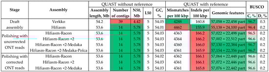 - Zimin, A.V.; Salzberg, S.L. The genome polishing tool POLCA makes fast and accurate corrections in genome assemblies. PLOS Comput. Biol. 2020, 16, e1007981. [Google Scholar] [CrossRef]