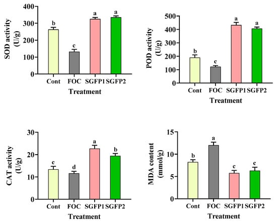 3.4. Effect of SGFP on Antioxidant System of Cucumber Seedlings
