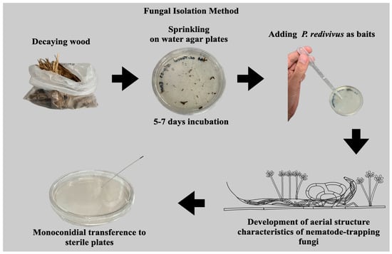 Representative scheme of the nematophagous fungi isolation process from decaying wood.