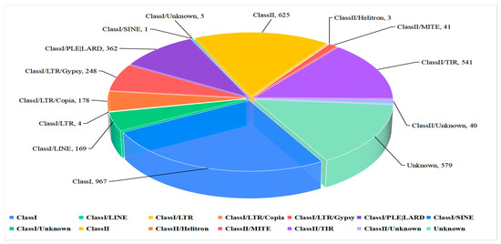 - Wicker, T.; Sabot, F.; Hua-Van, A.; Bennetzen, J.L.; Capy, P.; Chalhoub, B.; Flavell, A.; Leroy, P.; Morgante, M.; Panaud, O.; et al. A unified classification system for eukaryotic transposable elements. Nat. Rev. Genet. 2007, 8, 973–982. [Google Scholar] [CrossRef] [PubMed]