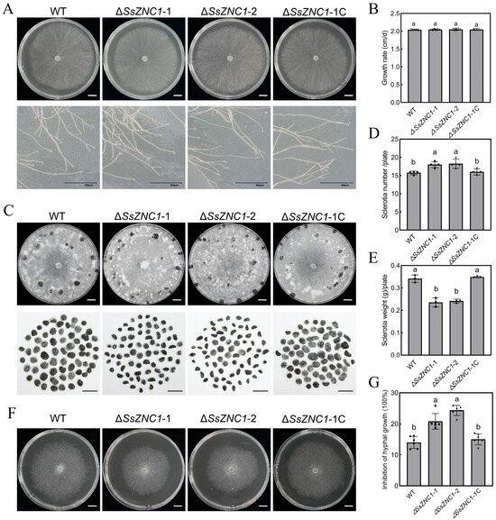 3.3. SsZNC1 Is Important for Sclerotial Development and Coping with Hyperosmotic Stress