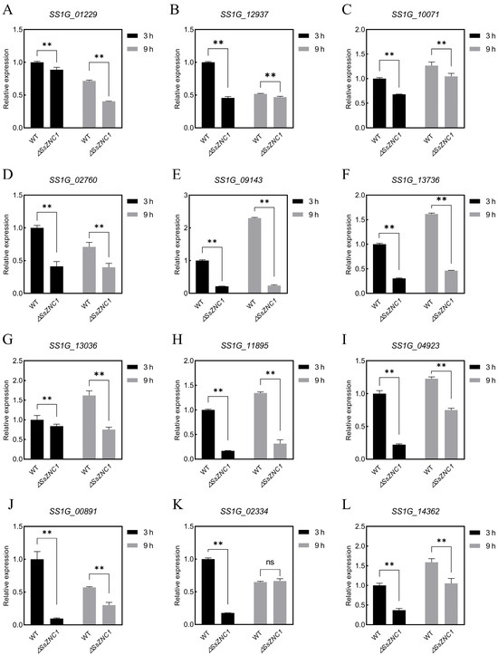 3.6. SsZNC1 Positively Regulates the Expression of Virulence-Related Genes