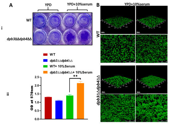 3.7. Loss of Dpb3 and Dpb4 Subunits Induces Biofilm Formation of C. albicans