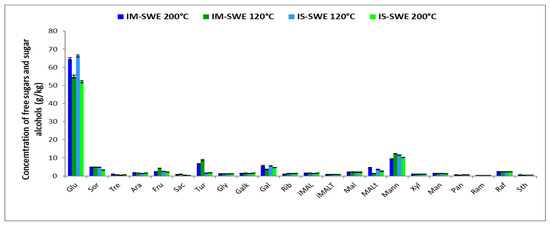 3.2. Qualitative and Quantitative Analysis of Sugars
