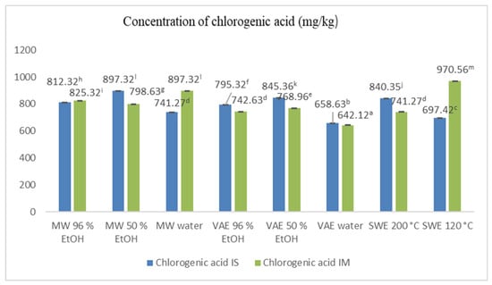 | IM | MW 96% EtOH | 14.63 ± 0.23 bc | 6.42 ± 0.23 e | 48.63 ± 1.41 g | 25.88 ± 0.23 d | 53.95 ± 1.41 f |
