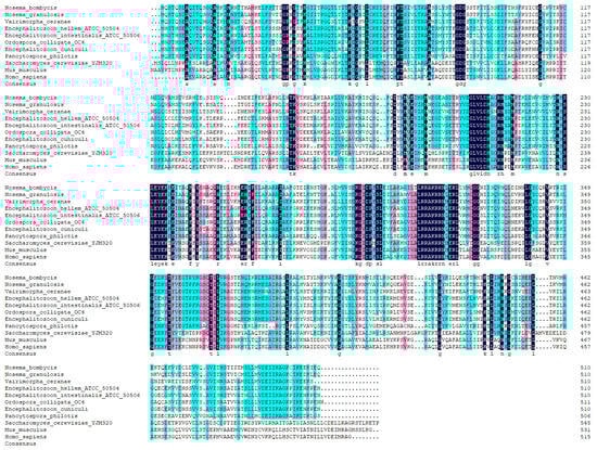 Multiple sequence alignment between CCTζ from Nosema bombycis and other eukaryotes.