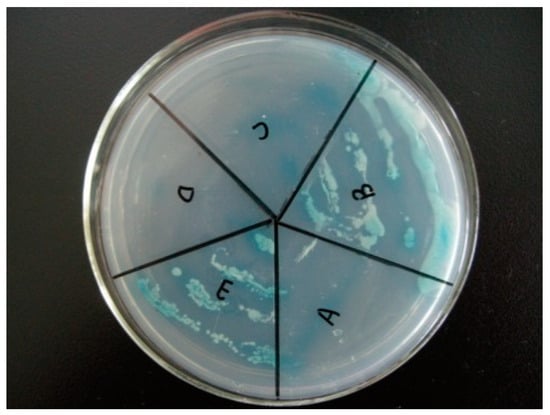 Validation of yeast two-hybrid positive plasmids: (A) negative control (pGBKT7-lam and pGADT7-T); (B) positive control (pGBKT7-p53 and pGADT7-T); (C) pGADT7 and pGBKT7-NbCCTα; (D) pGBKT7 and pGADT7-NbCCTζ; (E) pGBKT7-NbCCTα and pGADT7-NbCCTζ.