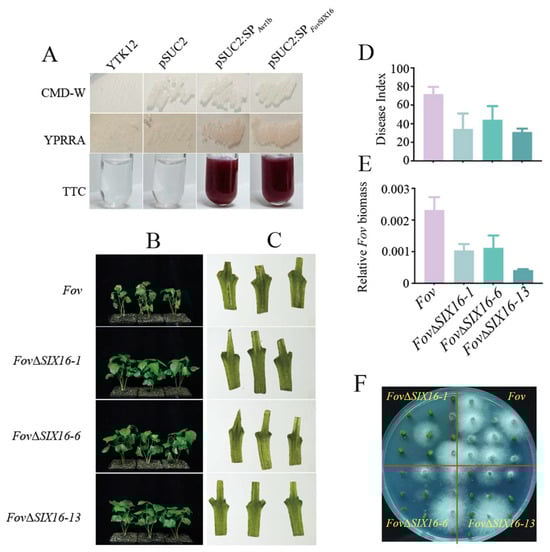 3.5. FovSIX16 Was Required for the Full Virulence of FOV7