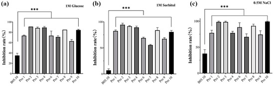 2.9. Sensitivity of B. cinerea Strains to Osmotic Stress