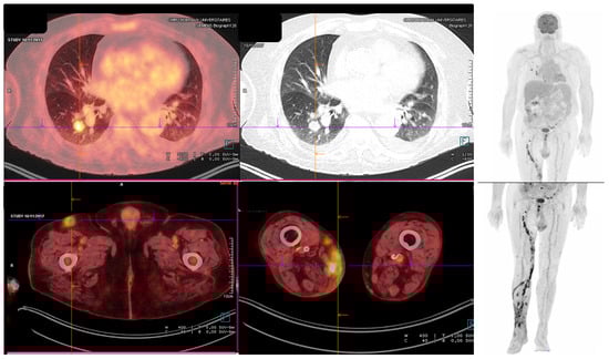 Scedosporium apiospermum disseminated IMD occurring in a 80-year-old kidney transplant recipient. Patient presented with a thigh abscess end of October, in which S. apiospermum was identified by biopsy at the beginning of November. PET-CT was performed on 16 November 2017 to search for extension and showed whole limb extension and pulmonary localization. BAL could not be performed due to the frailty of the patient. IMD did not improve on voriconazole and patient died on 29 November 2017.