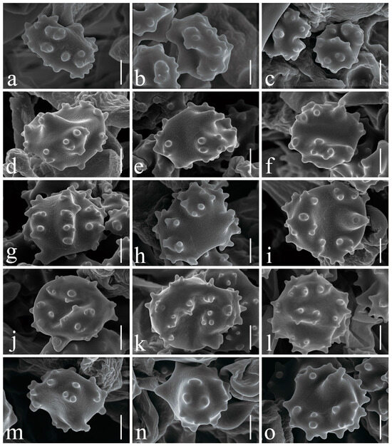 Basidiospores under SEM. (a–c) Thelephora dactyliophora (KUN-HKAS131943, type); (d–f) Thelephora lacunosa (KUN-HKAS128968, type); (g–i) Thelephora petaloides (KUN-HKAS97730, type); (j–l) Thelephora pinnatifida (KUN-HKAS96412, type); (m–o) Thelephora sikkimensis (KUN-HKAS128965, type). Bars = 2 µm.