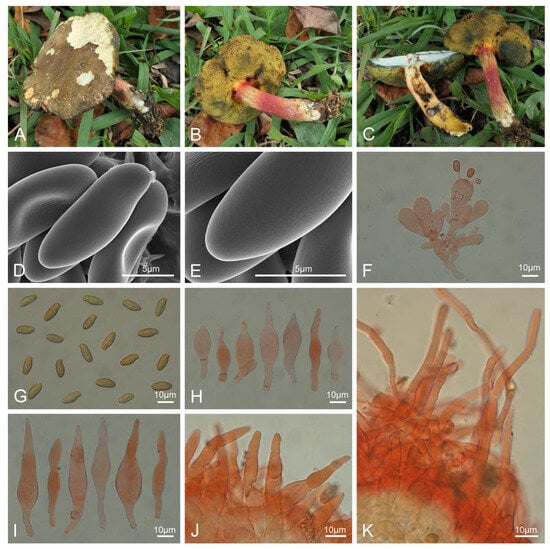 In the last two decades, enormous progress has been made in the study of boletes using the molecular criterion of polygenic genealogical concordance (GCPSR) to define species [,,,,,,,,]. Especially in China, research on boletes has reached a climax, with the relationships between subfamilies and genera determined. Several new genera and more than 200 new species have been published [,,,,,,,,,,,,,,,].