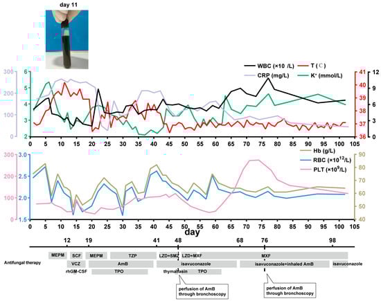 APA StyleLeng, X., Zhou, H., Xu, Z., & Xu, F. (2024). Oral Isavuconazole Combined with Nebulized Inhalation and Bronchoscopic Administration of Amphotericin B for the Treatment of Pulmonary Mucormycosis: A Case Report and Literature Review. Journal of Fungi, 10(6), 388. https://doi.org/10.3390/jof10060388