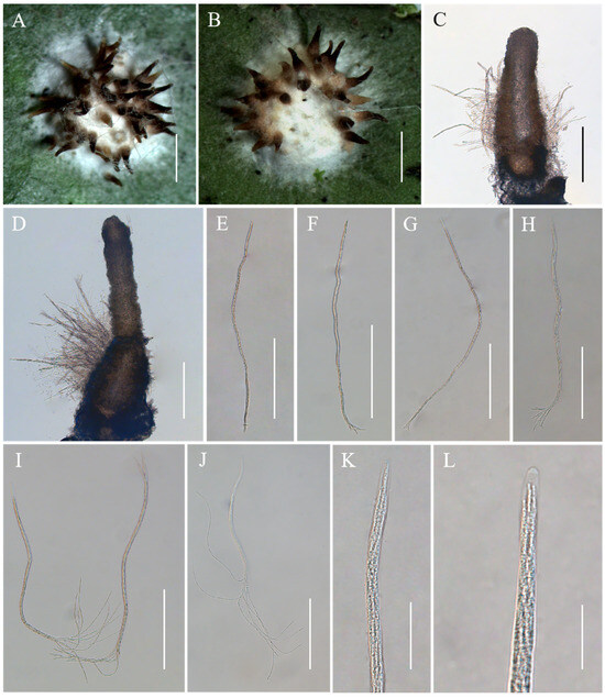 Other material examined. China, Yunnan Province, Jinping County, the Fenshuiling National Nature Reserve, 103°22′ E, 22°78′ N, alt. 1436 m, found on the underside of the living leaves of D. giganteus. 22 October 2023, Hong Yu and Zhi-Qin Wang (YHH MLFSL2310013, paratype; YFCC MLFSL23109454, ex-paratype living culture); Ibid., (YHH MLFSL2310014, YHH MLFSL2310015, YHH MLFSL2310016, YHH MLFSL2310017, YHH MLFSL2310018).