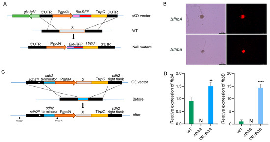 3.3. Construction of fhbA and fhbB Deletion and Overexpression Mutants