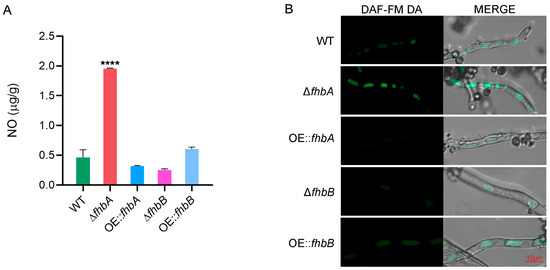 3.4. fhbA Plays a Key Role in Sustaining NO Homeostasis in A. flavus