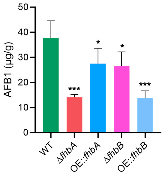 3.5. Different Role of fhbA and fhbB in the Biosynthesis of AFB1