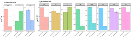 (a) Composition of macroelements (mg/g d.w.) and (b) microelements (mg/kg d.w.) in G. pfeifferi and G. resinaceum samples.