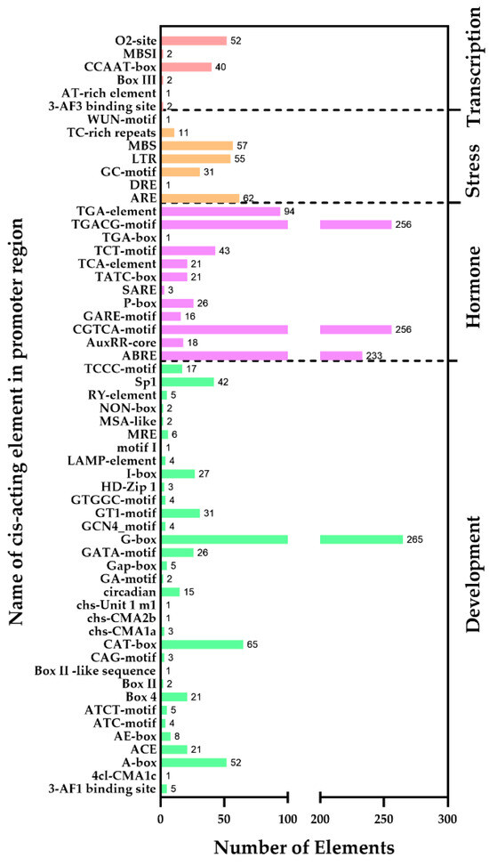 51. Marand, A.P.; Eveland, A.L.; Kaufmann, K.; Springer, N.M. Cis-regulatory elements in plant development, adaptation, and evolution. Annu. Rev. Plant Biol. 2023, 74, 111–137. [Google Scholar] [CrossRef]