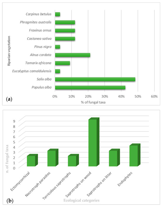 (a) Freshwater vegetation linked with the observed fungal taxa; (b) ecological category of freshwater macro- and microfungi.