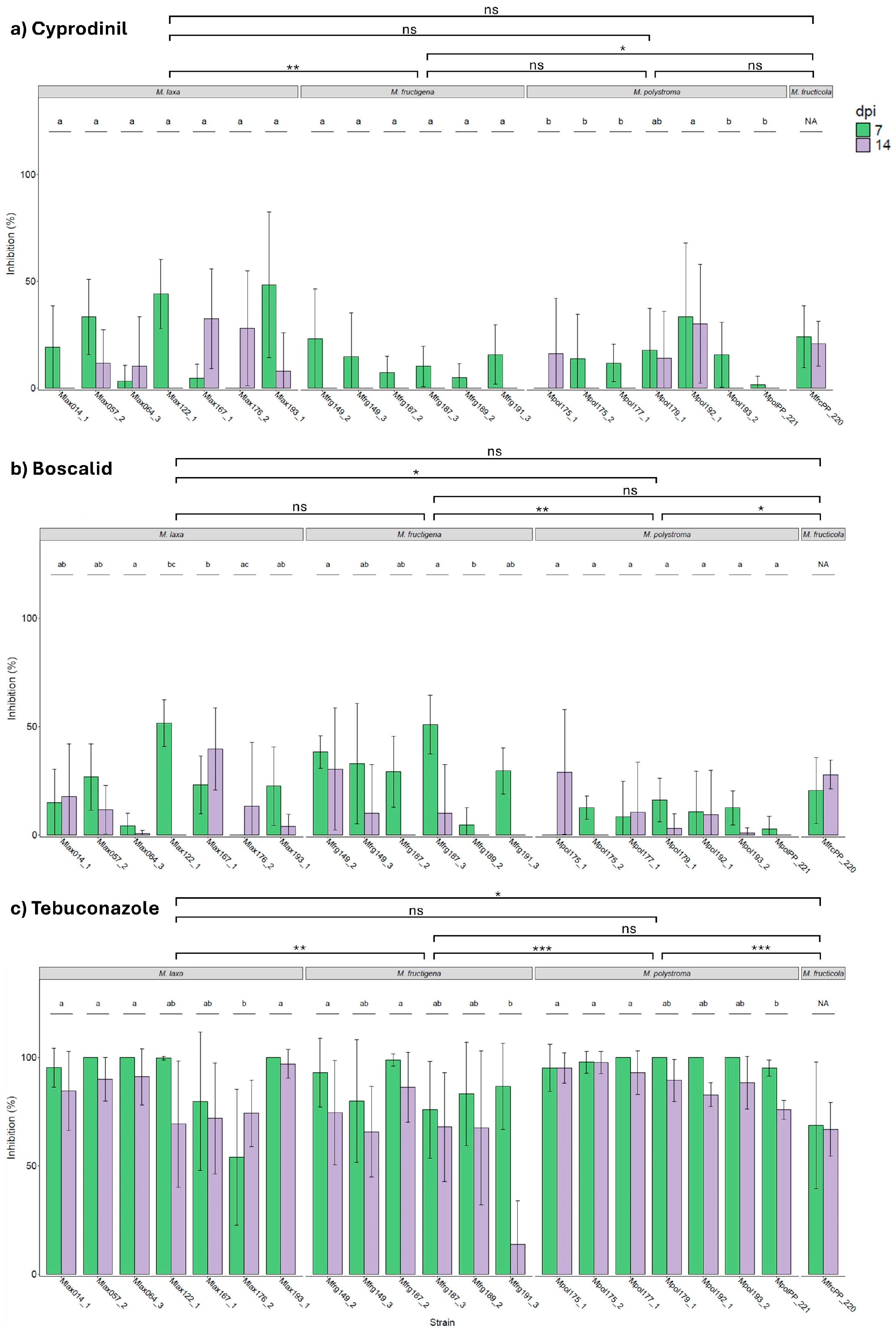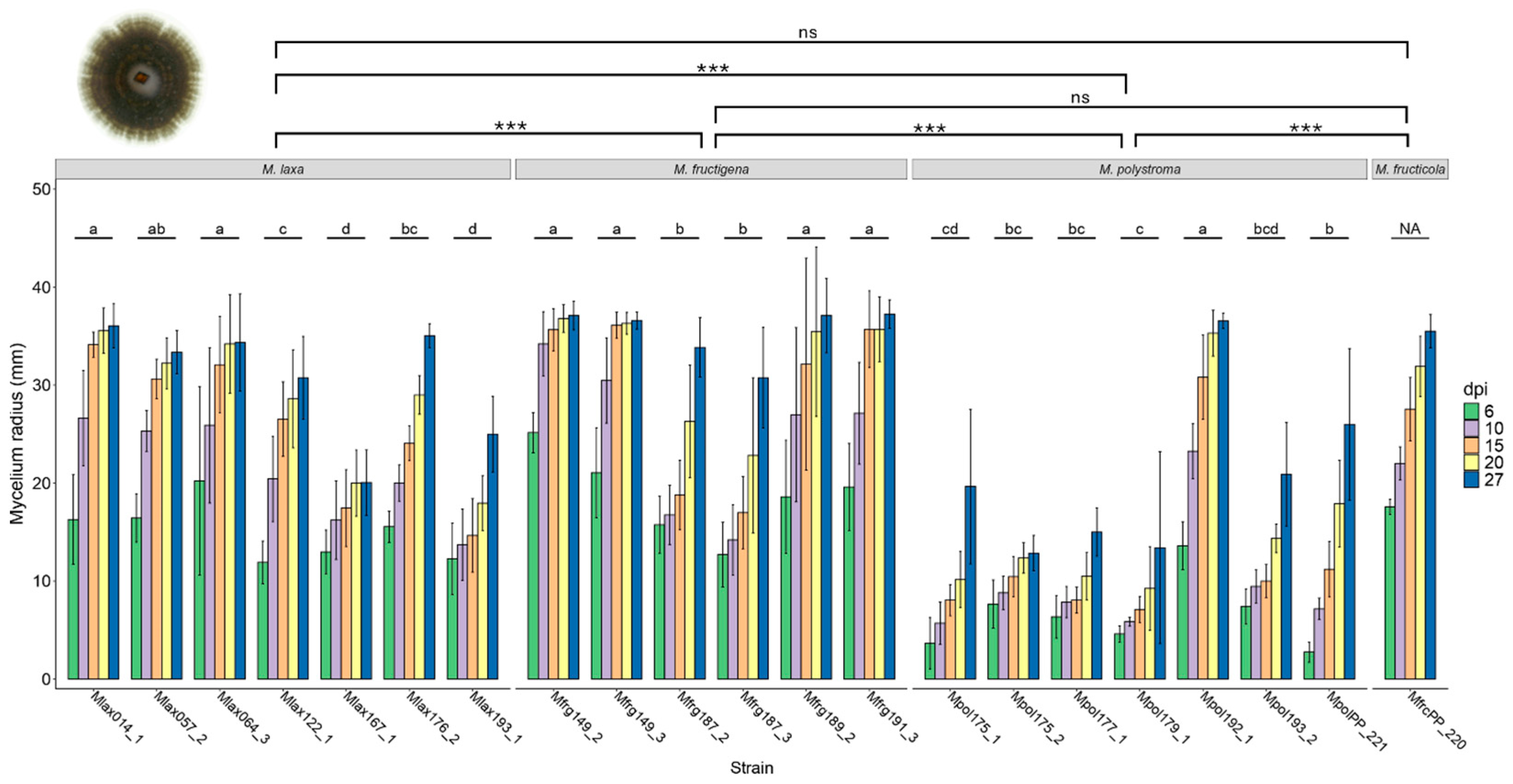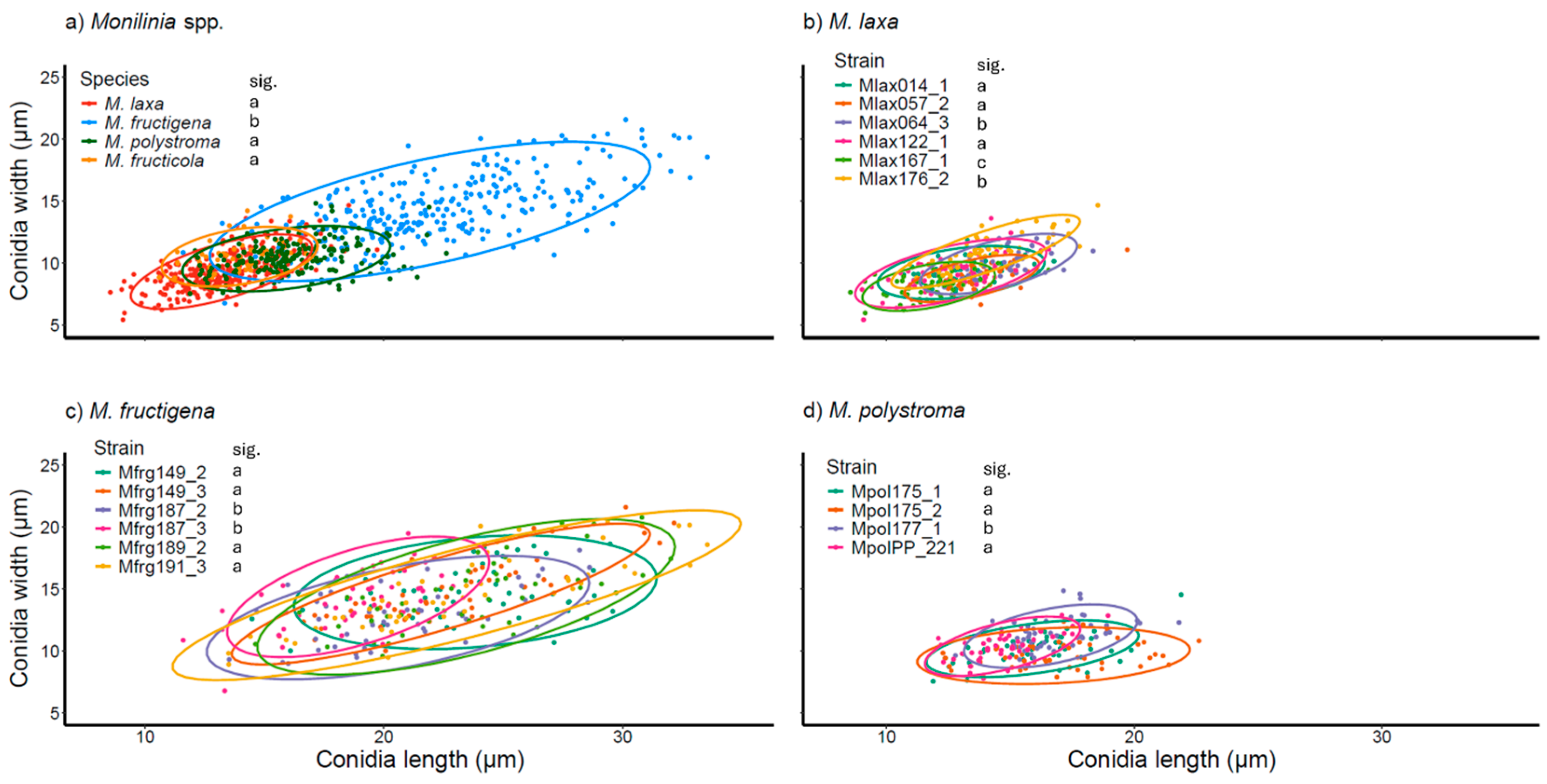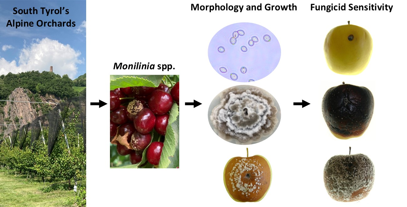 Pagano, M.M.; Oettl, S.; Deltedesco, E.; Pii, Y.; Spitaler, U. Variation in Growth, Morphology, and Fungicide Sensitivity Among Monilinia Species from South Tyrol’s Alpine Orchards. J. Fungi 2025, 11, 690. https://doi.org/10.3390/jof11100690