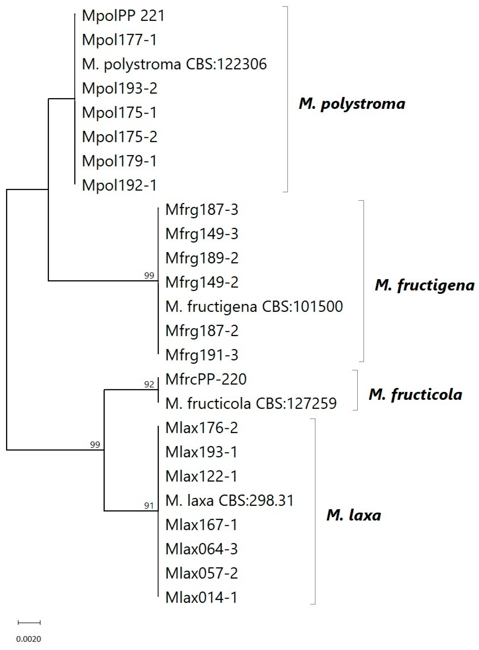 M. fructicola | MfrcPP_220 | Cherry | Bari, Italy (CBS 144849) |