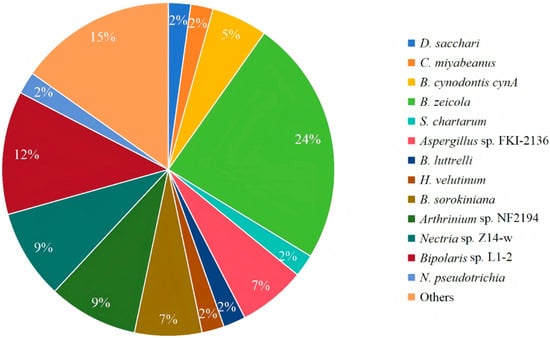 - Han, J.Y.; Zhang, J.Y.; Song, Z.J.; Zhu, G.L.; Liu, M.M.; Dai, H.Q.; Hsiang, T.; Liu, X.T.; Zhang, L.X.; Quinn, R.J.; et al. Genome-based mining of new antimicrobial meroterpenoids from the phytopathogenic fungus Bipolaris sorokiniana strain 11134. Appl. Microbiol. Biotechnol. 2020, 104, 3835–3846. [Google Scholar] [CrossRef]