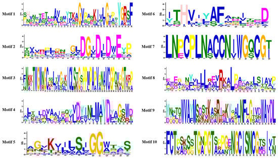 The gene structure, specifically the exon-intron organization, was visualized using TBtools, based on genome annotation files [45]. The domain composition of GH18 family proteins was identified using SMART. Domain features were further validated through the PROSITE database [46] (https://prosite.expasy.org/ (accessed on 25 April 2025)). Conserved motifs were predicted using the MEME Suite [47] (http://memesuite.org/tools/meme (accessed on 27 April 2025)). The motif data were subsequently integrated and visualized using the “Gene Structure View (Advances)” function in TBtools.
