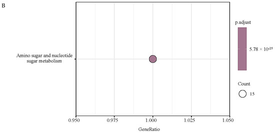 To functionally annotate the GH18 family genes, a Gene Ontology (GO) comparative analysis was conducted using eggNOG-mapper (http://eggnog5.embl.de/ (accessed on 28 April 2025)). Visualization of the results was performed using WEGO (v2.0). The KEGG pathway annotation file was obtained from the KEGG database (https://www.kegg.jp/kegg/pathway.html (accessed on 29 April 2025)). KEGG pathway enrichment analysis was conducted utilizing the cluster Profiler package (v3.21), and the results were visualized using the ggplot2 plotting system (v3.21).