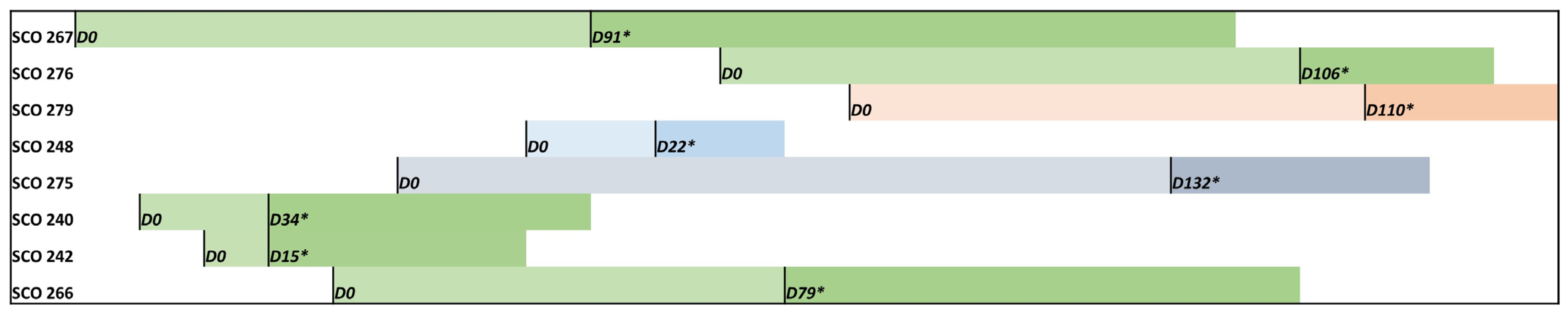 GCN5 | c.439_444del | p.(Glu134_Asn135del) | In-frame deletion | SCO 240, SCO 248, SCO 266, SCO 275, SCO 279 |