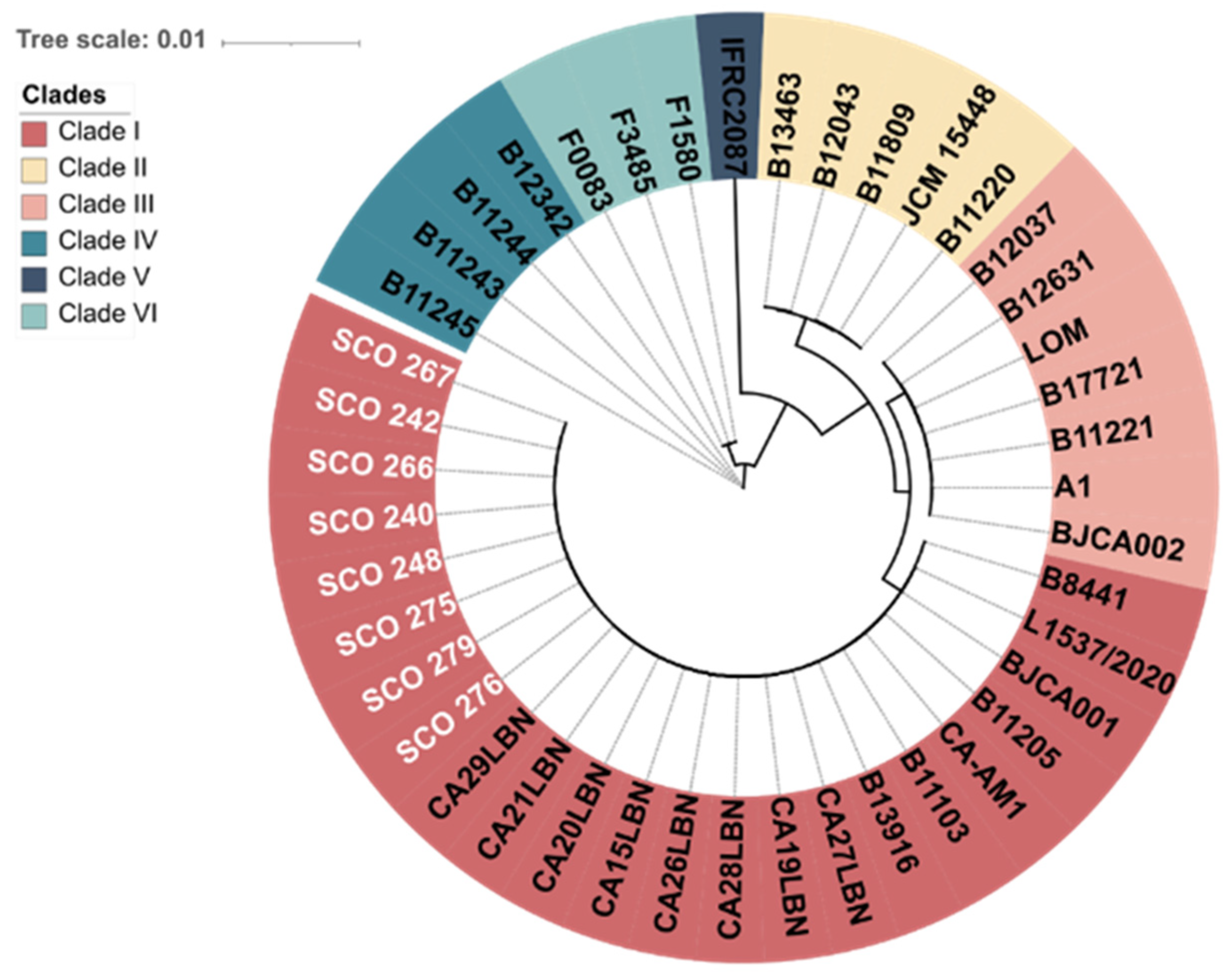 - Letunic, I.; Bork, P. Interactive Tree of Life (iTOL) v6: Recent updates to the phylogenetic tree display and annotation tool. Nucleic Acids Res. 2024, 52, W78–W82. [Google Scholar] [CrossRef]
