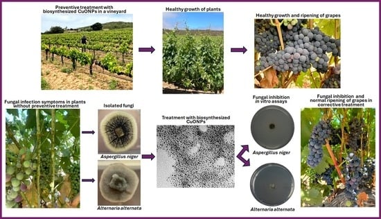 Chicago/Turabian StyleMartínez-Soto, Domingo, Erisneida Campos-Jiménez, Alejandro Cabello-Pasini, Luis Enrique Garcia-Marin, Anaid Meza-Villezcas, and Ernestina Castro-Longoria. 2025. "Evaluation of Fungal Sensitivity to Biosynthesized Copper-Oxide Nanoparticles (CuONPs) in Grapevine Tissues and Fruits" Journal of Fungi 11, no. 10: 719. https://doi.org/10.3390/jof11100719
