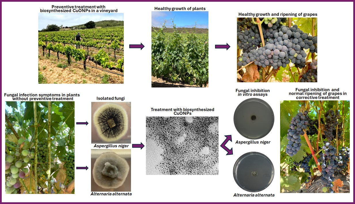 Martínez-Soto D, Campos-Jiménez E, Cabello-Pasini A, Garcia-Marin LE, Meza-Villezcas A, Castro-Longoria E. Evaluation of Fungal Sensitivity to Biosynthesized Copper-Oxide Nanoparticles (CuONPs) in Grapevine Tissues and Fruits. Journal of Fungi. 2025; 11(10):719. https://doi.org/10.3390/jof11100719