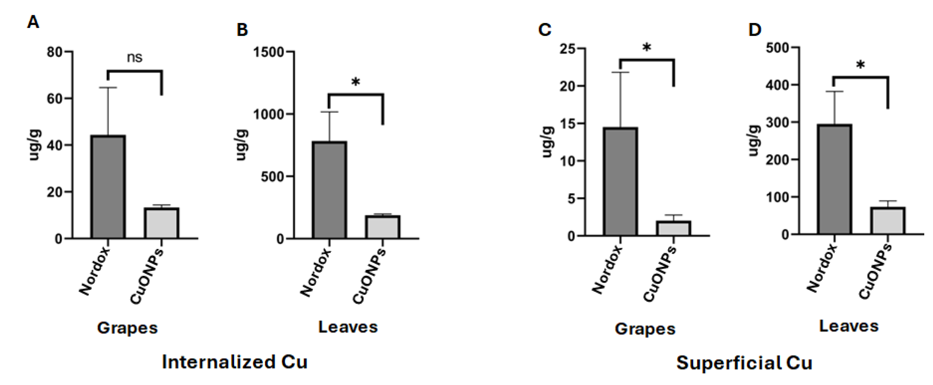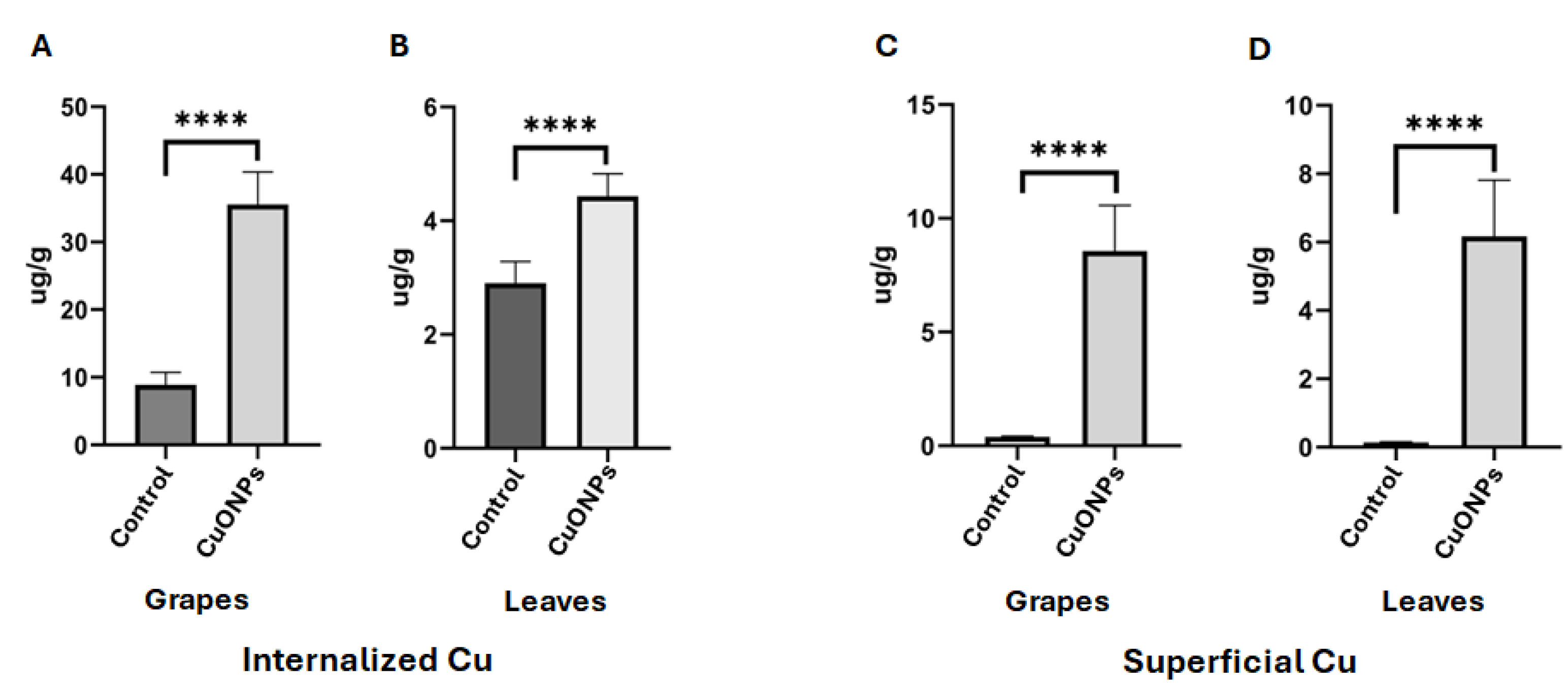 3.6. Plants Treated with CuONPs Showed Low Concentration of Cu in Tissues