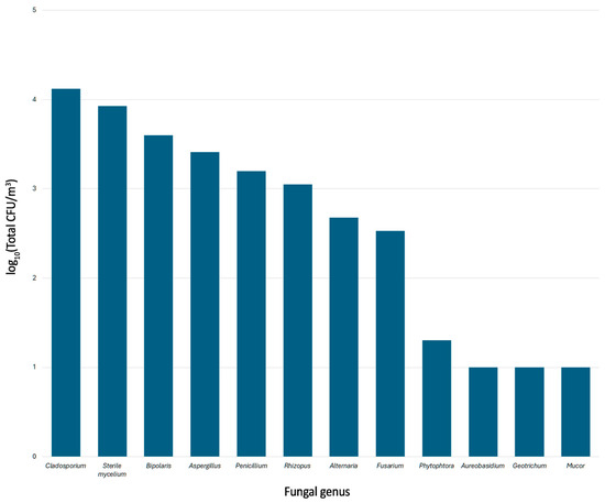 - Shelton, B.G.; Kirkland, K.H.; Flanders, W.D.; Morris, G.K. Profiles of airborne fungi in buildings and outdoor environments in the United States. Appl. Environ. Microbiol. 2002, 68, 1743–1753. [Google Scholar] [CrossRef]