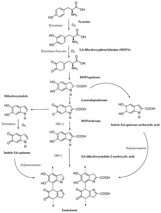 - Solano, F. Melanins: Skin pigments and much more—Types, structural models, biological functions, and formation routes. New J. Sci. 2014, 2014, 498276. [Google Scholar] [CrossRef]