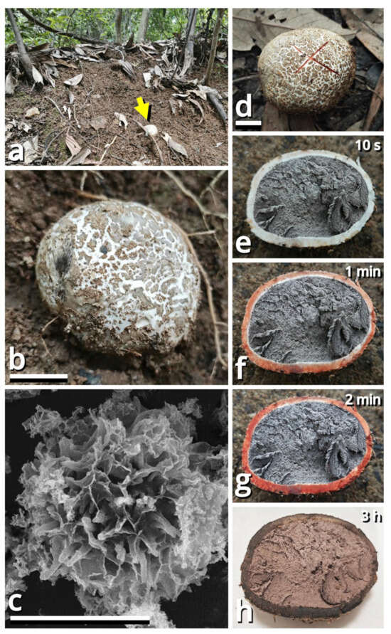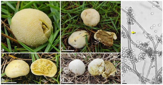 - Guzmán, G.; Cortés-Pérez, A.; Guzmán-Dávalos, L.; Ramírez-Guillén, F.; Sánchez-Jácome, M.D. An emendation of Scleroderma, new records, and review of the known species in Mexico. Rev. Mex. Biodivers. 2013, 84, 173–191. [Google Scholar] [CrossRef]