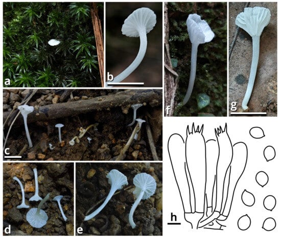- Chang, C.C.; Chou, W.N. Two new species of Mycena in Taiwan. Fungal Sci. 2019, 34, 9–17. [Google Scholar]
