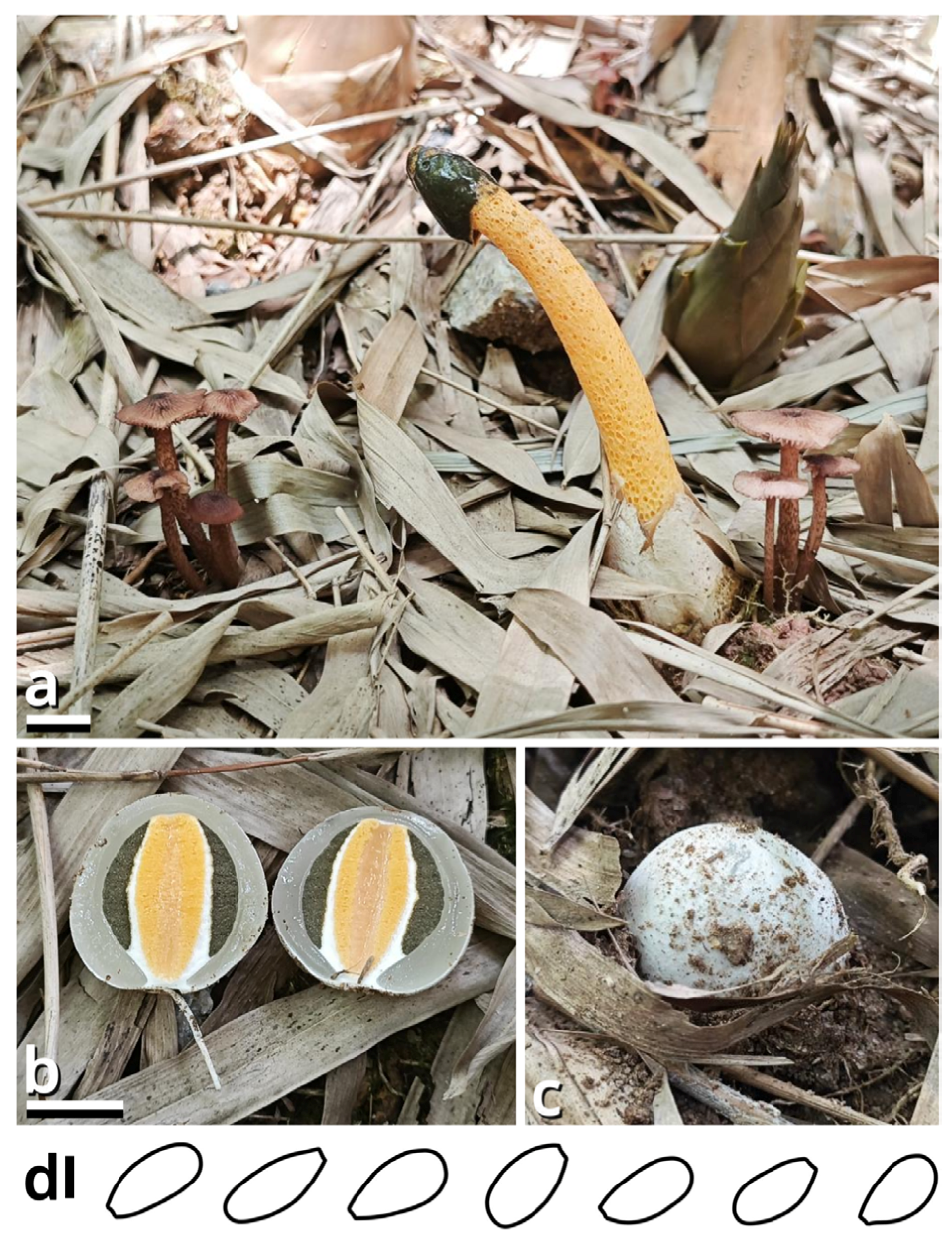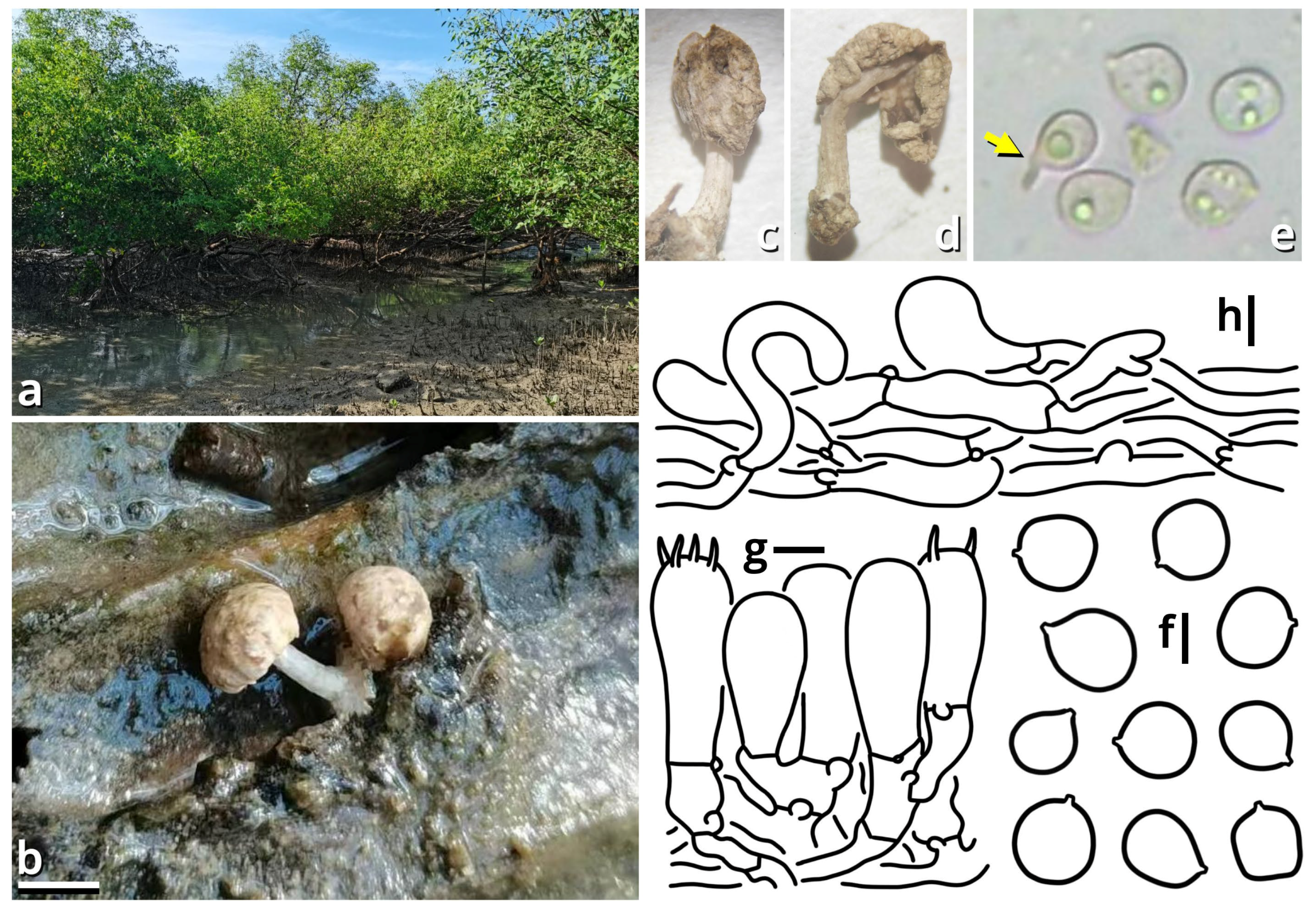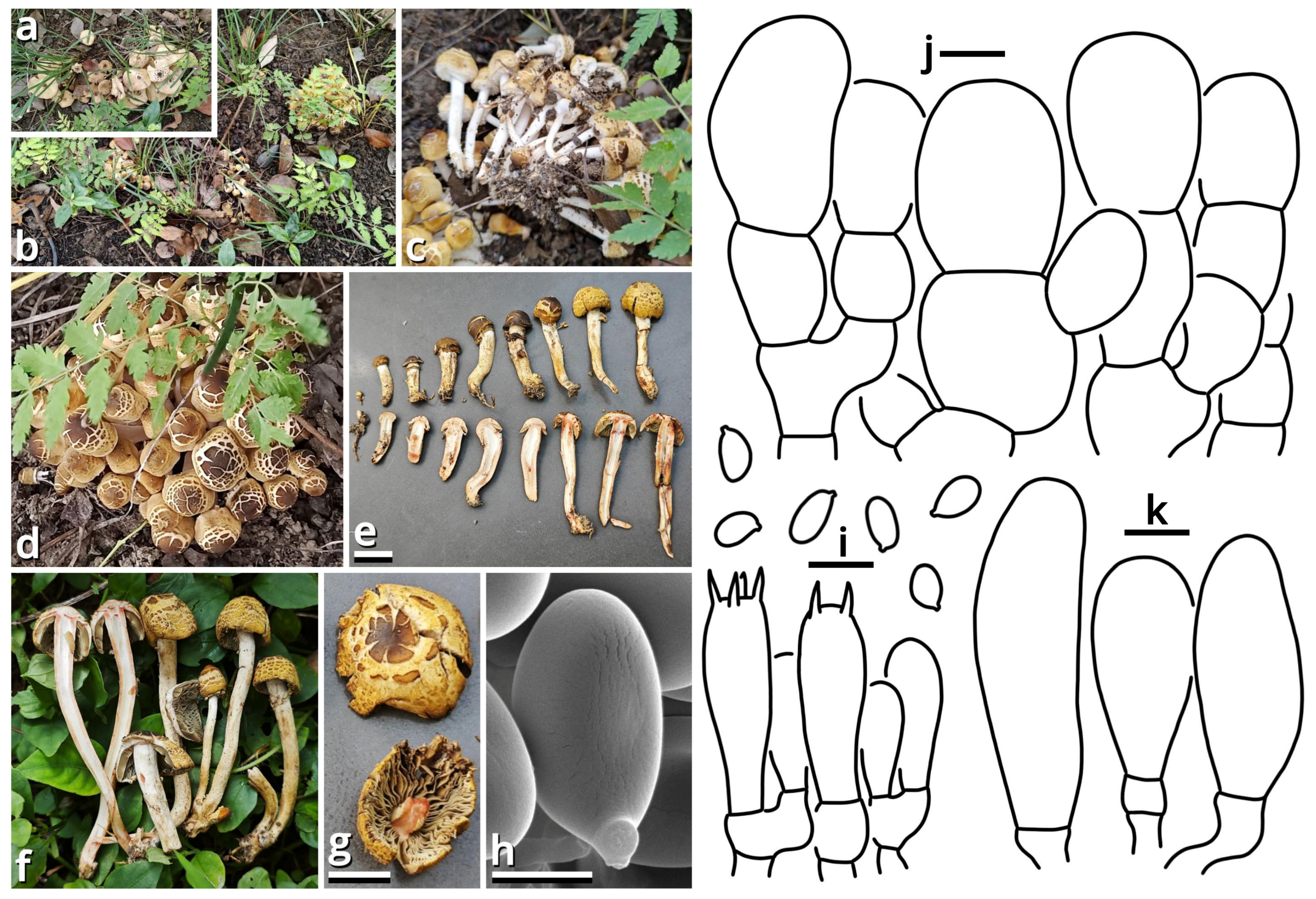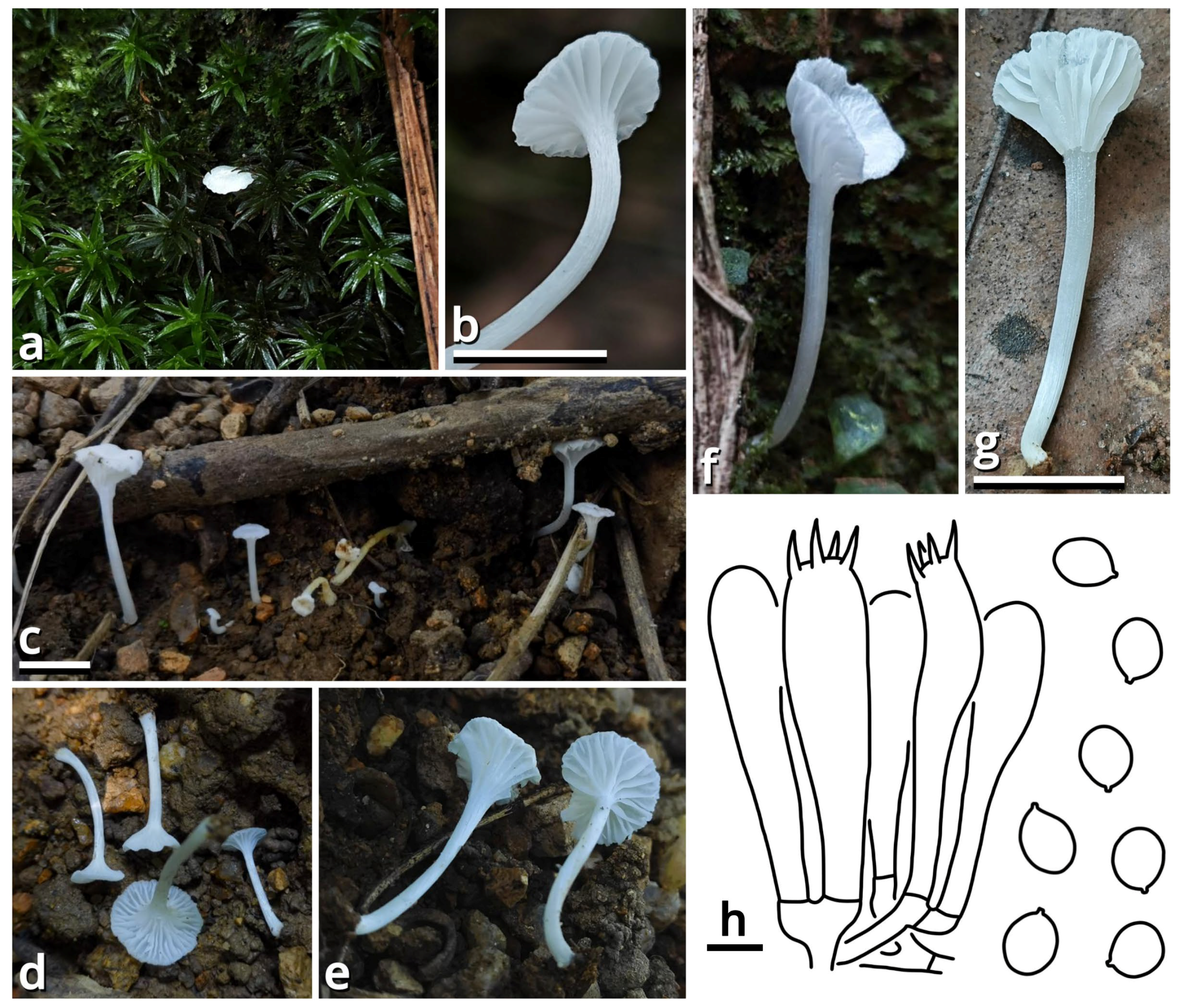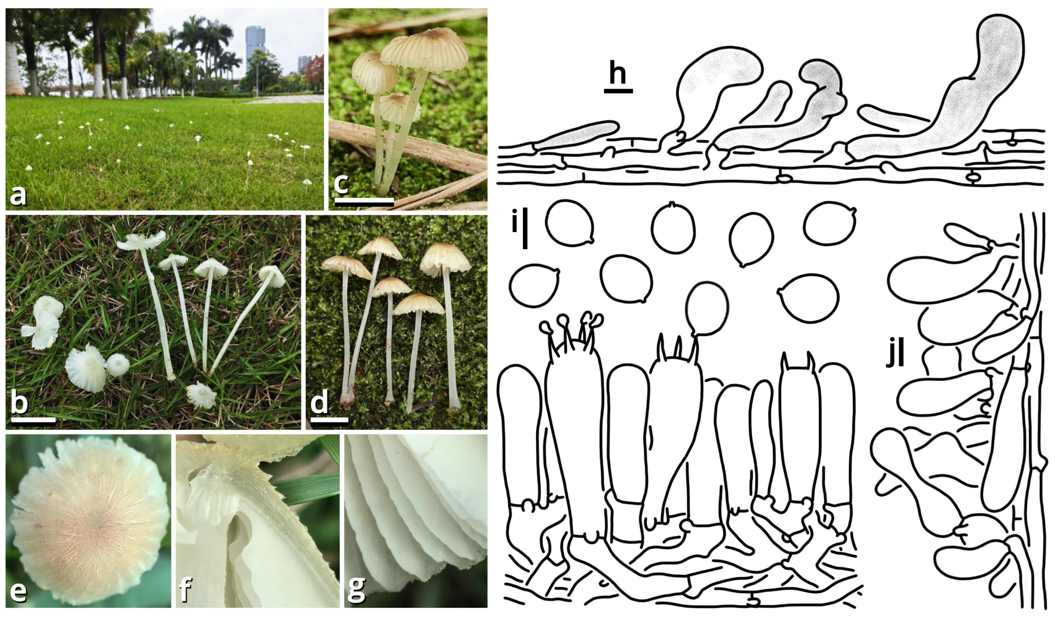 - Yang, K.L.; Lin, J.Y.; Li, G.-M.; Yang, Z.L. New and Interesting Fungi from Guangzhou City, South China, 1st ed.; Magnolia Press: Auckland, New Zealand, 2025; pp. 1–95. [Google Scholar] [CrossRef]