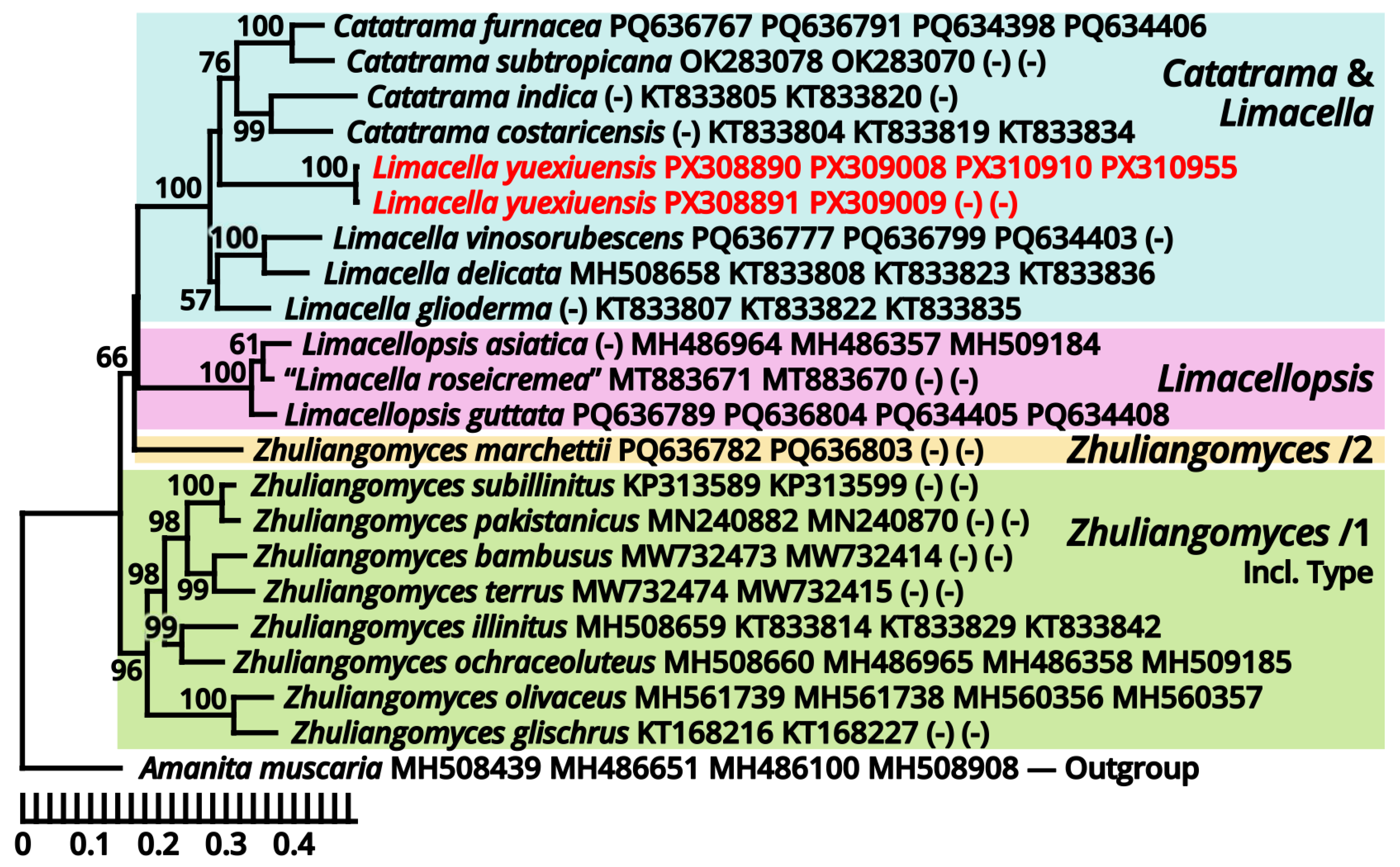 - Consiglio, G.; Setti, L. Contributo alla conoscenza del genere Limacella s. l. Riv. Micol. Rom. 2024, 40, 3–59. [Google Scholar] [CrossRef]